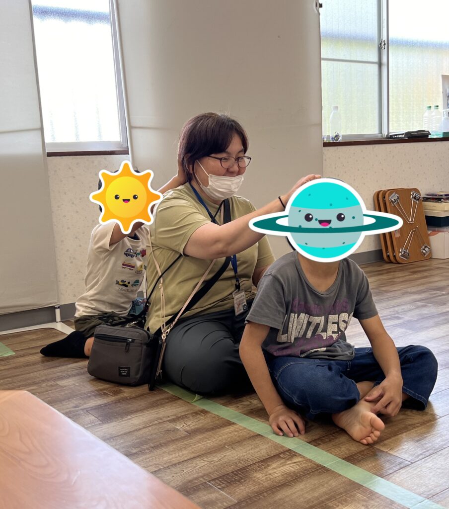 日々の活動の中で、背中や足・手などをタッチして感覚を刺激しています。