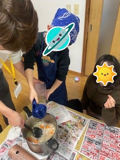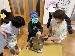 野菜を切ったり、混ぜたり、それぞれが役割を持って楽しくクッキング🎵